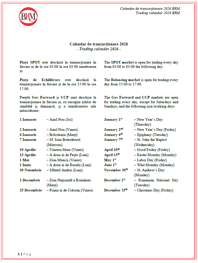 Piaţa pentru Ziua Următoare de energie electrică cu respectarea mecanismului de cuplare prin preț a piețelor